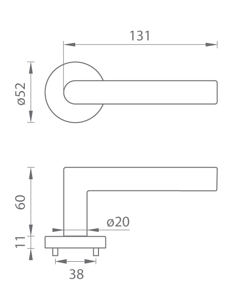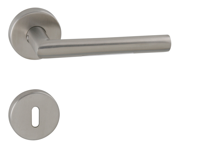 Rozetová klika na interiérové ​​dveře s kulatou rozetou je vyrobena z vysoce kvalitní nerezavějící oceli, známé jako nerez a je povrchově upravena. Rozeta má průměr 52 mm a standardní tloušťku 11 mm.