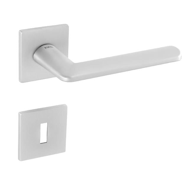 Rozetová klika na interiérové ​​dveře s hranatou rozetou je vyrobena z materiálů vysoké kvality - zamak a je povrchově upravena. Rozeta má rozměry 52 mm x 52 mm a tloušťku pouze 5 mm.