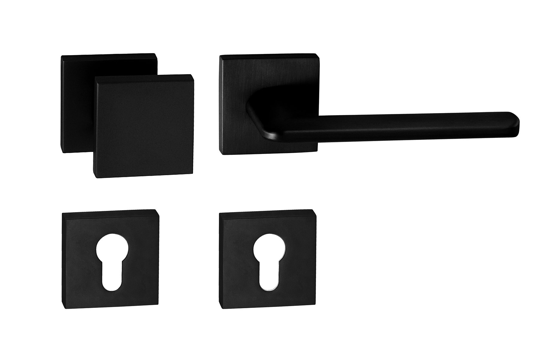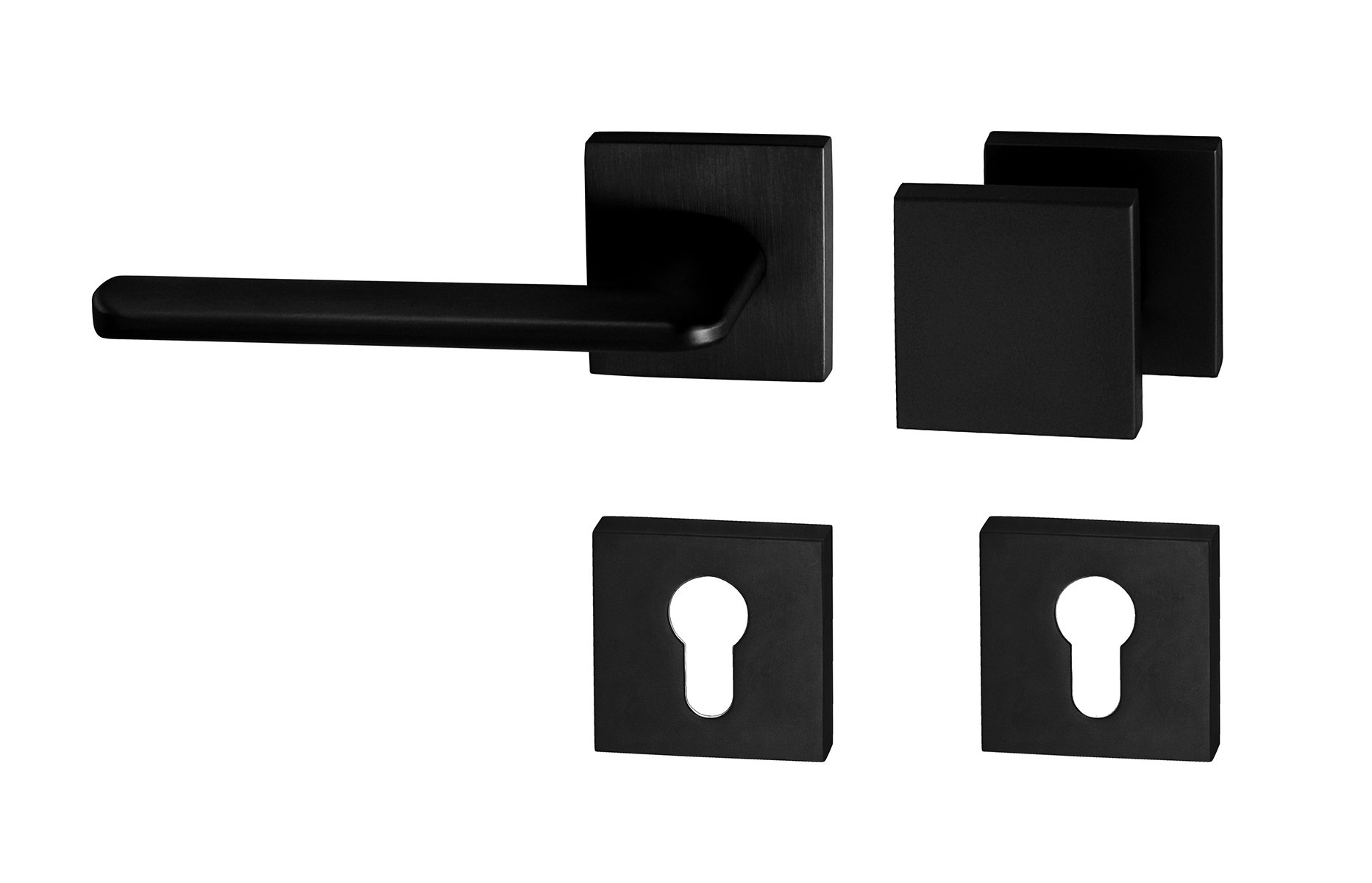 Rozetová klika na interiérové ​​dveře s hranatou rozetou je vyrobena z materiálů vysoké kvality - zamak a je povrchově upravena. Rozeta má rozměry 52 mm x 52 mm a standardní tloušťku 11 mm.