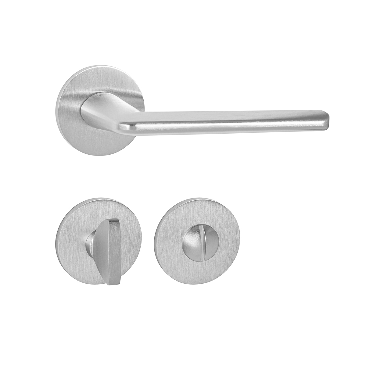 Rozetová klika na interiérové ​​dveře s kulatou rozetou je vyrobena z materiálů vysoké kvality - zamak a je povrchově upravena. Rozeta má průměr 52 mm a tloušťku pouze 5 mm.