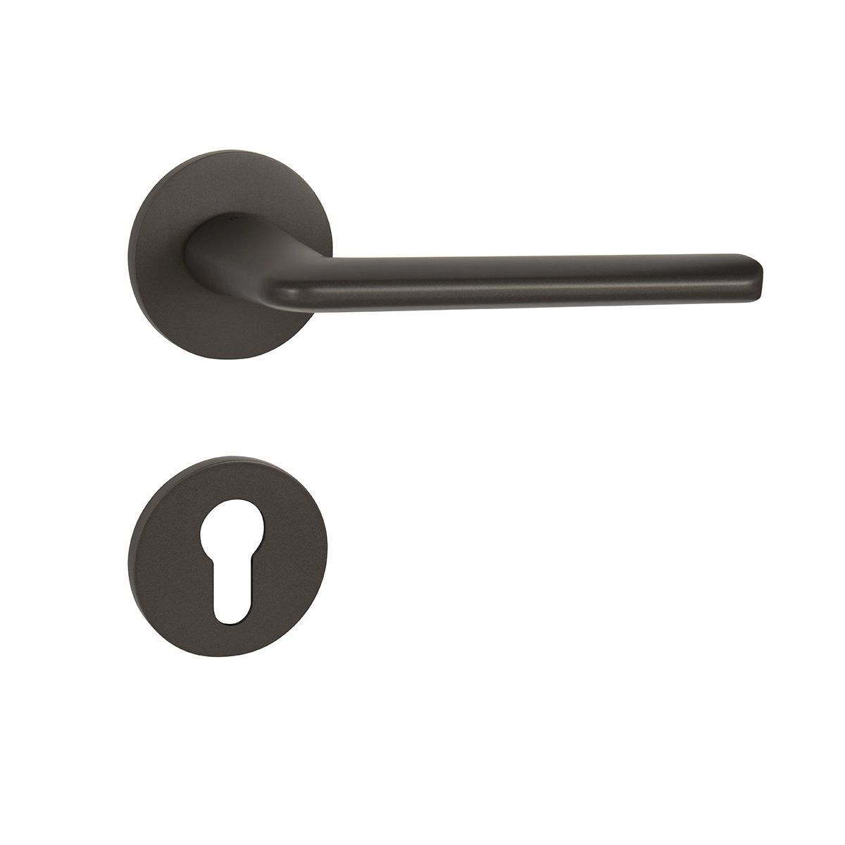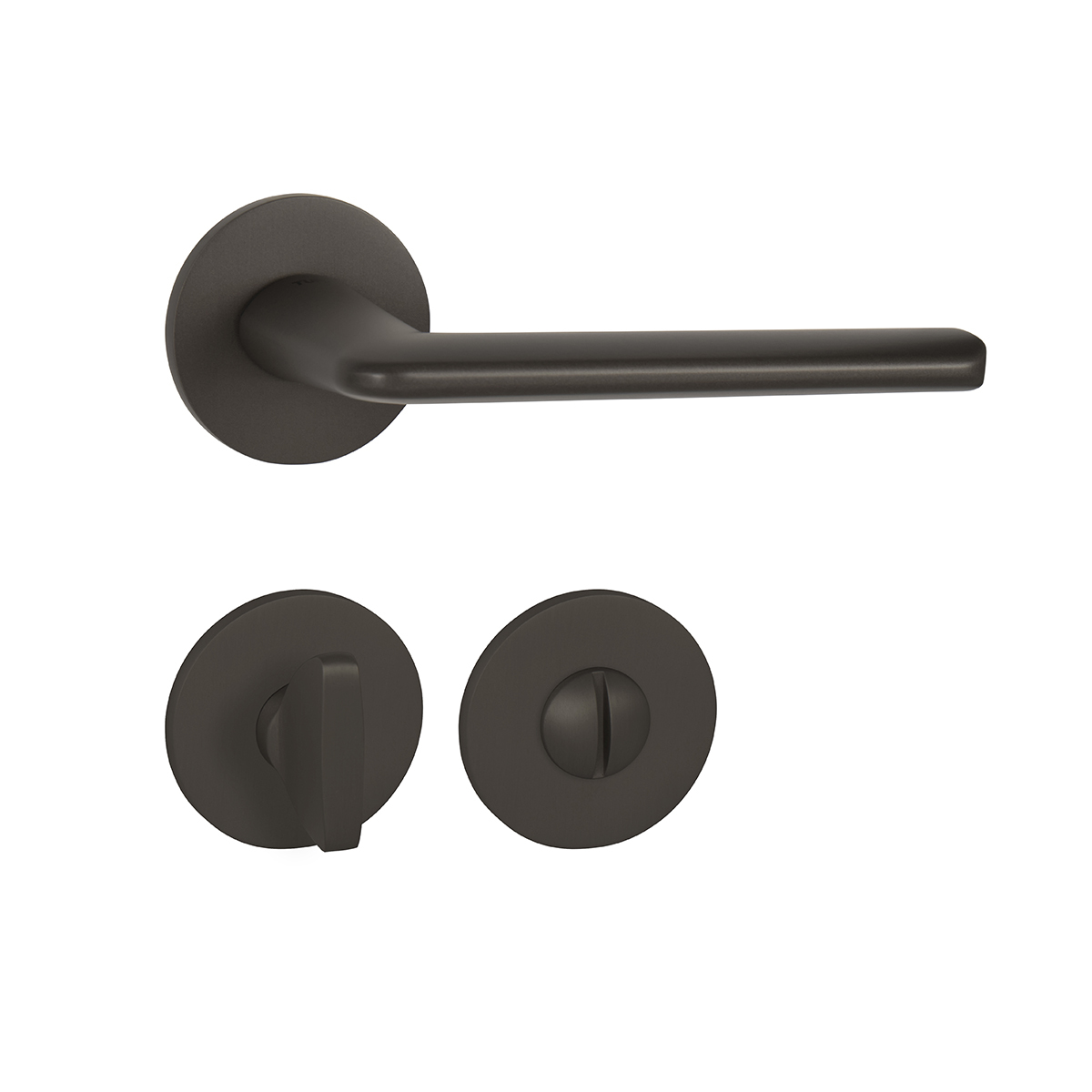 Rozetová klika na interiérové ​​dveře s kulatou rozetou je vyrobena z materiálů vysoké kvality - zamak a je povrchově upravena. Rozeta má průměr 52 mm a tloušťku pouze 5 mm.