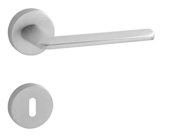Rozetová klika na interiérové ​​dveře s kulatou rozetou je vyrobena z materiálů vysoké kvality - zamak a je povrchově upravena. Rozeta má průměr 52 mm a standardní tloušťku 11 mm.