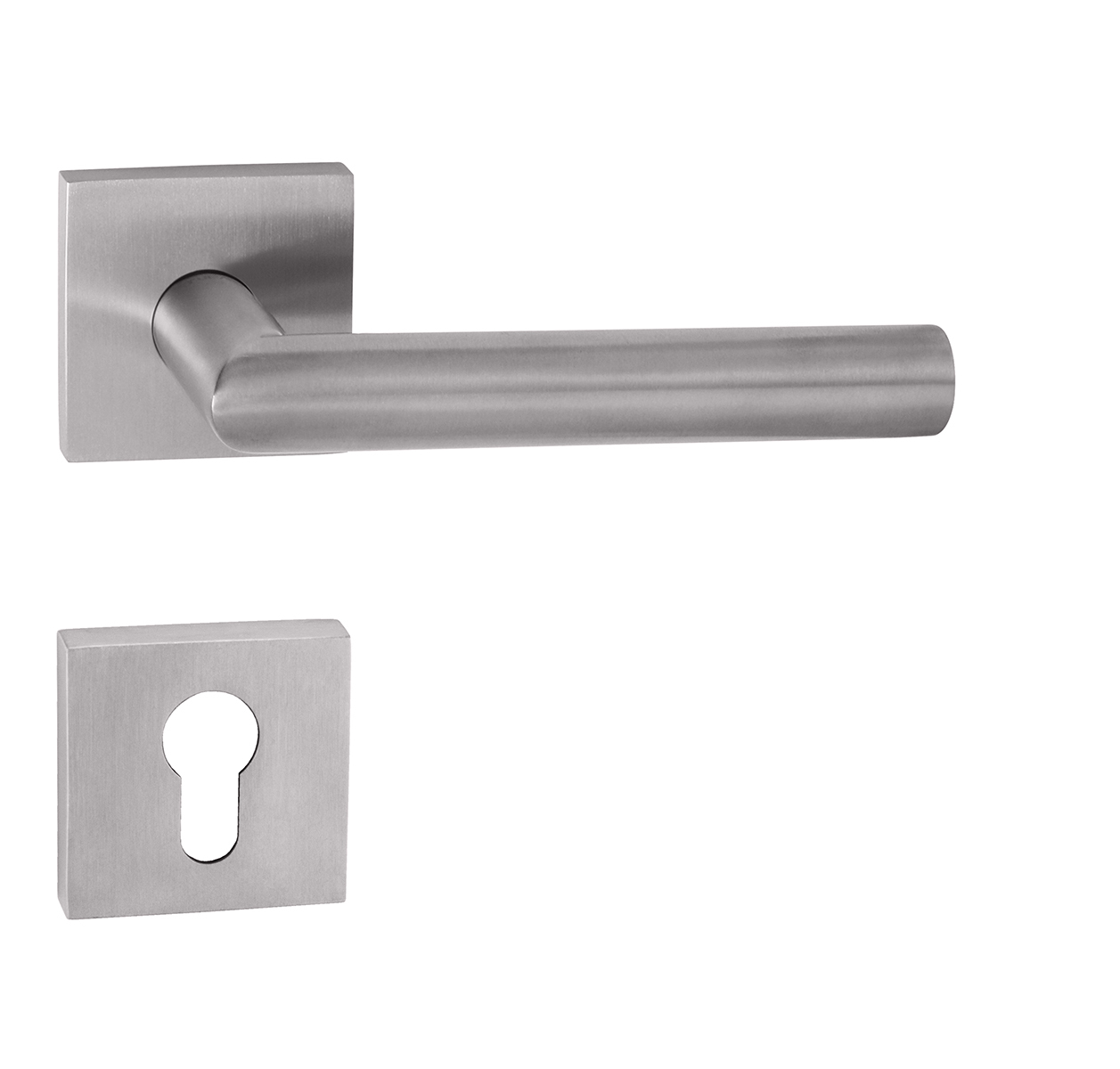 Rozetová klika na interiérové dveře s hranatou rozetou je vyrobena z vysoce kvalitní nerezavějící oceli, známé jako nerez a je povrchově upravena. Rozeta má rozměry 52 mm x 52 mm a standardní tloušťku 11 mm.