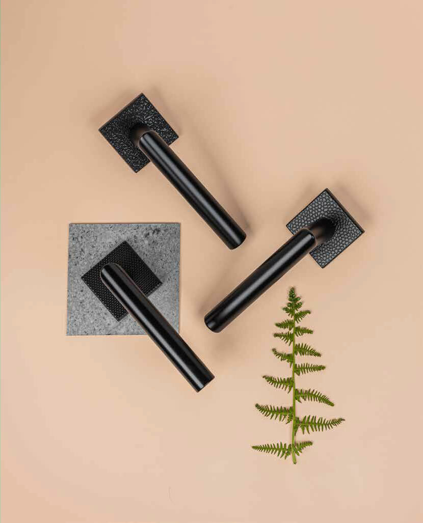 Okrasná textura KŮŽE zdobí jen rozetu, povrch samotné kliky zůstává příjemně lesklý a hladký. Klika v sobě tak symbolicky spojuje dva protiklady -  jednoduchost a složitost. Zároveň nabízí svým majitelům každodenní speciální hmatový zážitek.