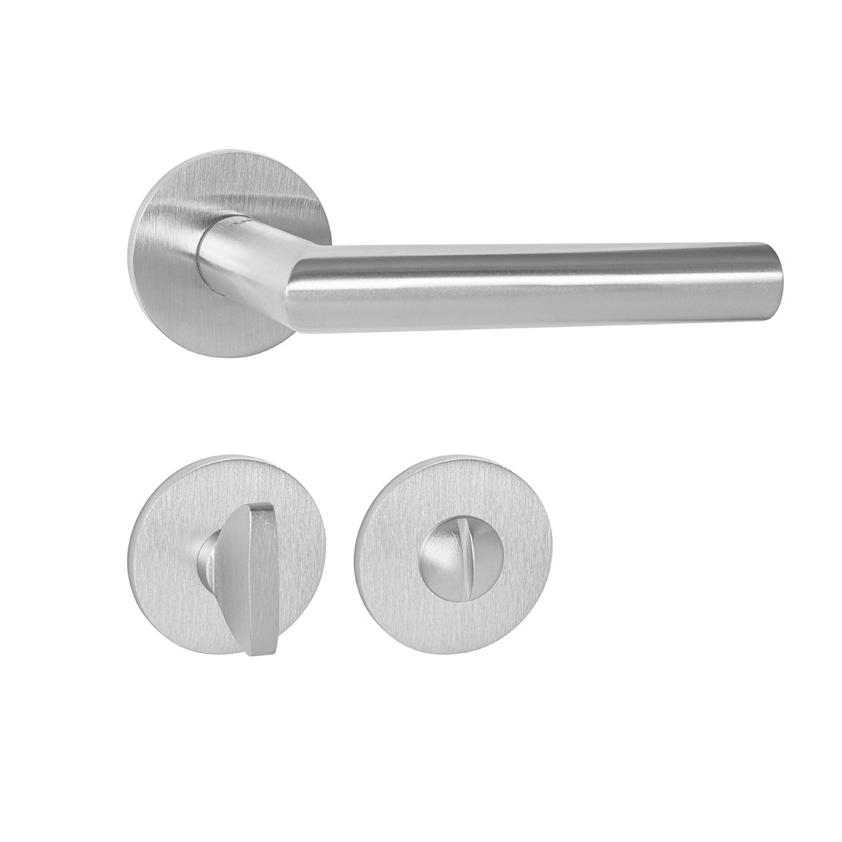 Rozetová klika na interiérové ​​dveře s kulatou rozetou je vyrobena z vysoce kvalitní nerezavějící oceli, známé jako nerez a je povrchově upravena. Rozeta má průměr 52 mm a tloušťku pouze 5 mm.