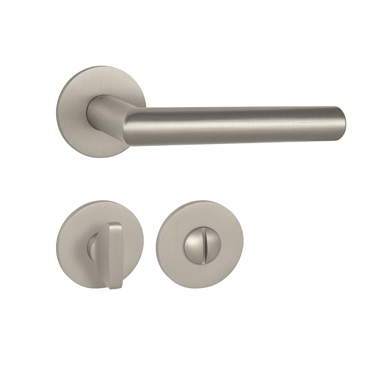 Rozetová klika na interiérové dveře s kulatou rozetou je vyrobena z vysoce kvalitní nerezavějící oceli, známé jako nerez a je povrchově upravena. Rozeta má průměr 52 mm a tloušťku pouze 5 mm.