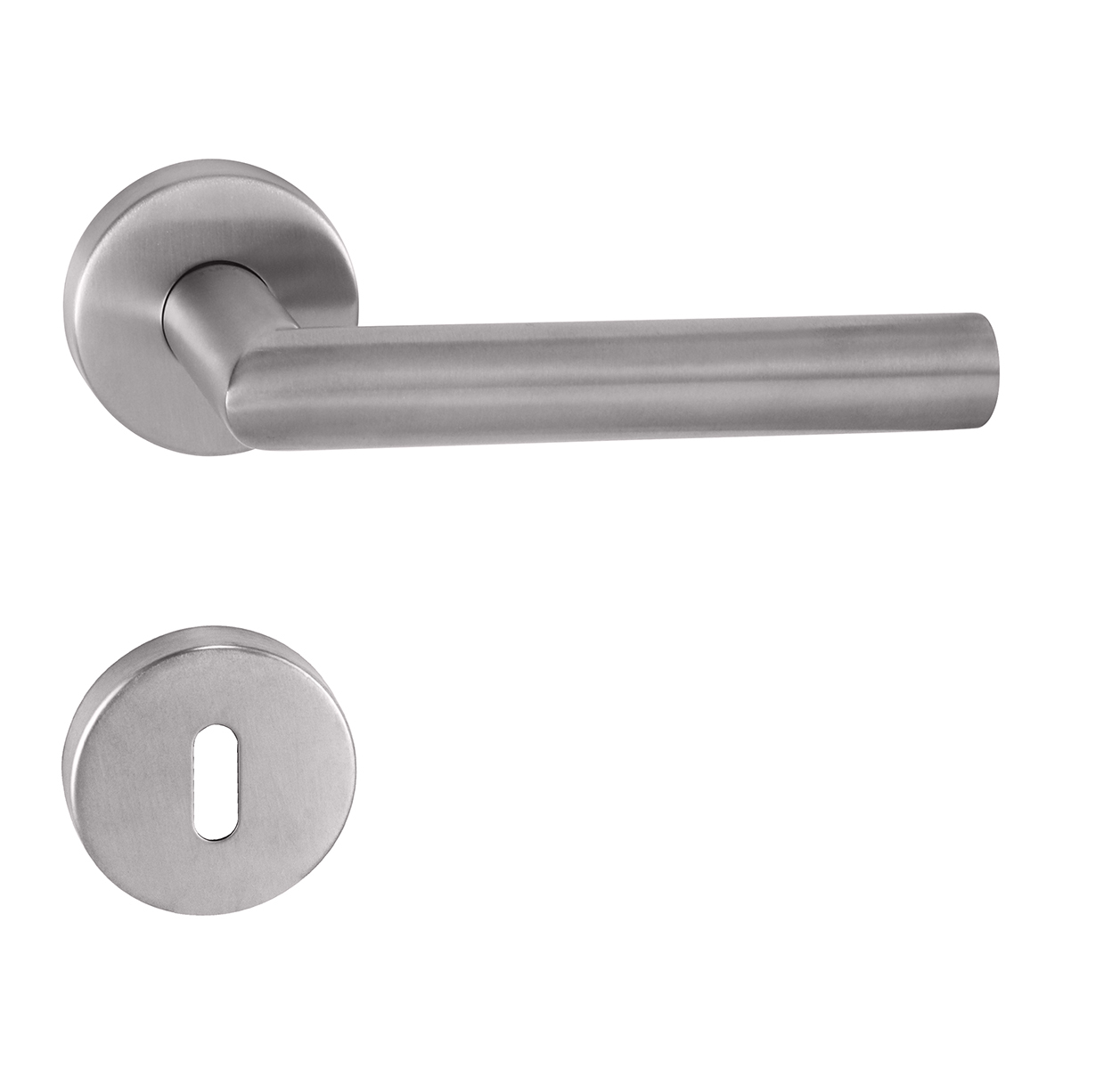 Rozetová klika na interiérové ​​dveře s kulatou rozetou je vyrobena z vysoce kvalitní nerezavějící oceli, známé jako nerez a je povrchově upravena. Rozeta má průměr 52 mm a standardní tloušťku 11 mm.