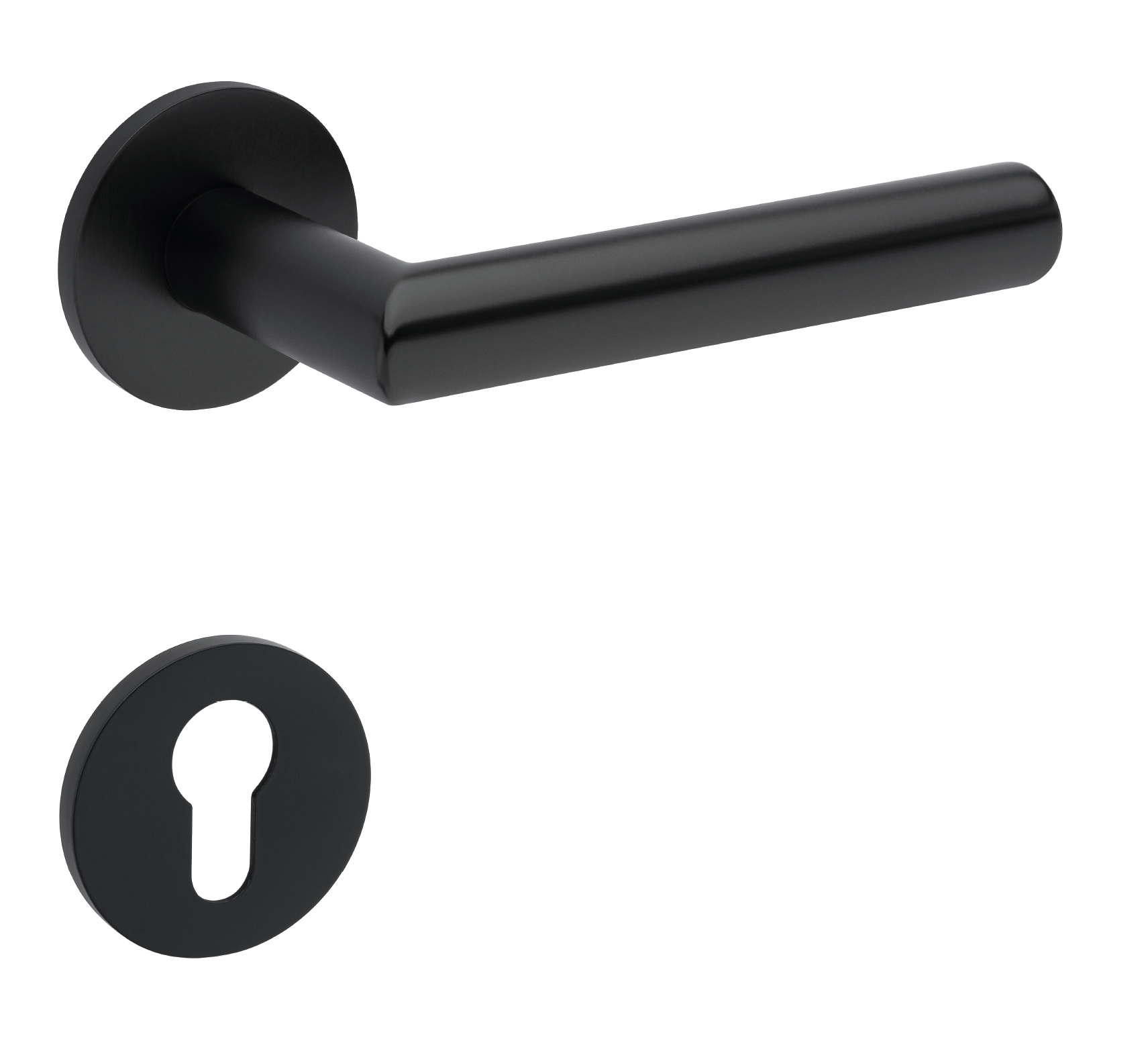 Rozetová klika na interiérové ​​dveře s kulatou rozetou je vyrobena z vysoce kvalitní nerezavějící oceli, známé jako nerez a je povrchově upravena. Rozeta má průměr 52 mm a tloušťku pouze 5 mm.