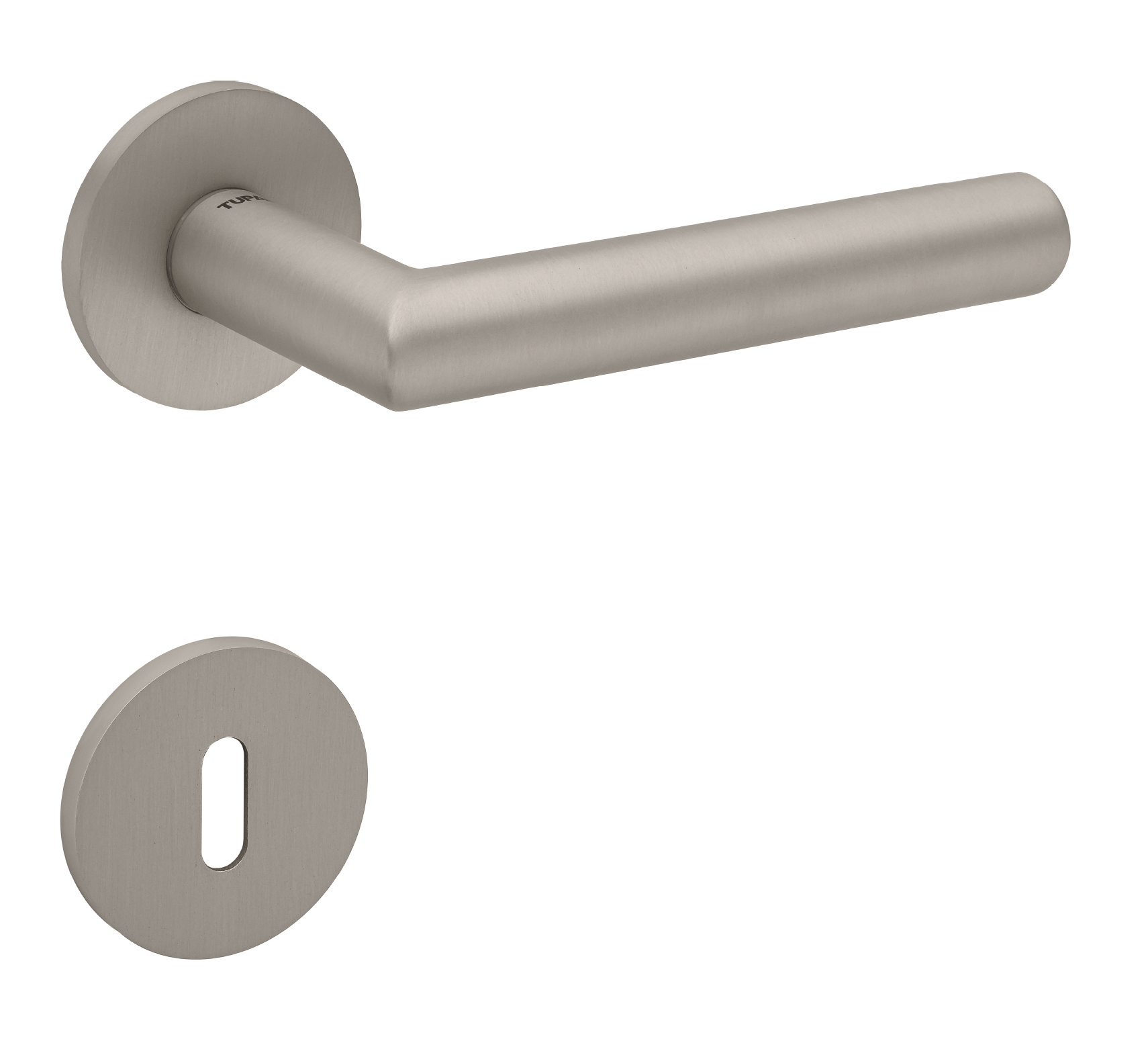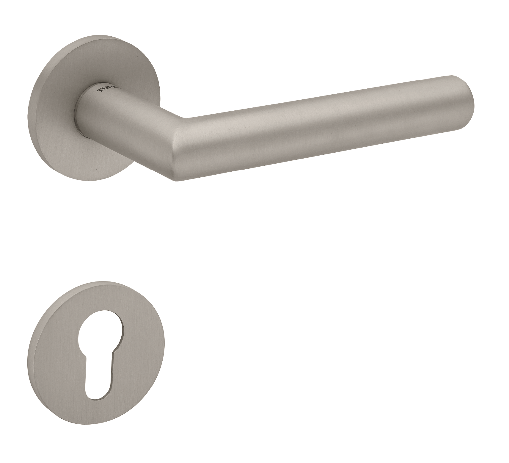 Rozetová klika na interiérové ​​dveře s kulatou rozetou je vyrobena z vysoce kvalitní nerezavějící oceli, známé jako nerez a je povrchově upravena. Rozeta má průměr 52 mm a tloušťku pouze 5 mm.