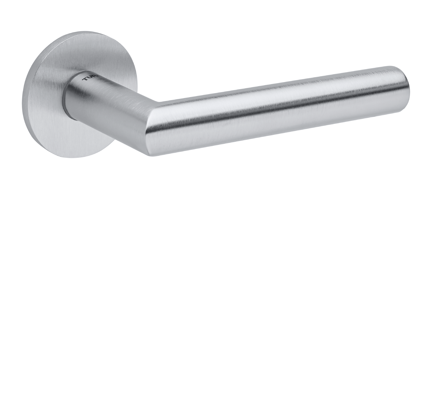 Rozetová klika na interiérové ​​dveře s kulatou rozetou je vyrobena z vysoce kvalitní nerezavějící oceli, známé jako nerez a je povrchově upravena. Rozeta má průměr 52 mm a tloušťku pouze 5 mm.