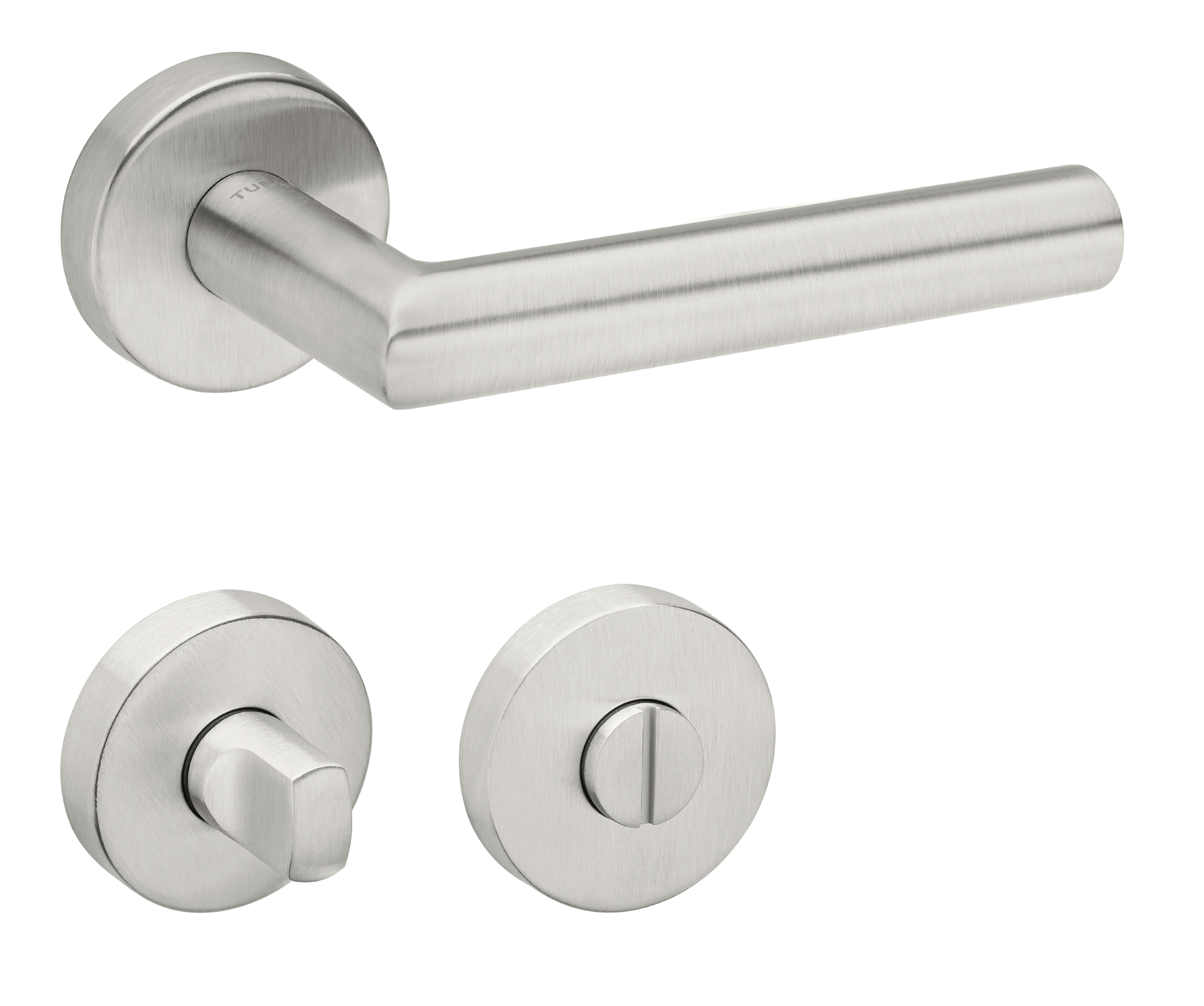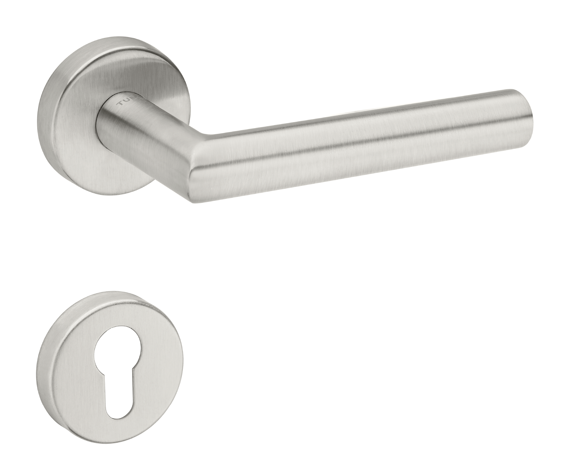 Rozetová klika na interiérové dveře s kulatou rozetou je vyrobena z vysoce kvalitní nerezavějící oceli, známé jako nerez a je povrchově upravena. Rozeta má průměr 52 mm a standardní tloušťku 11 mm.