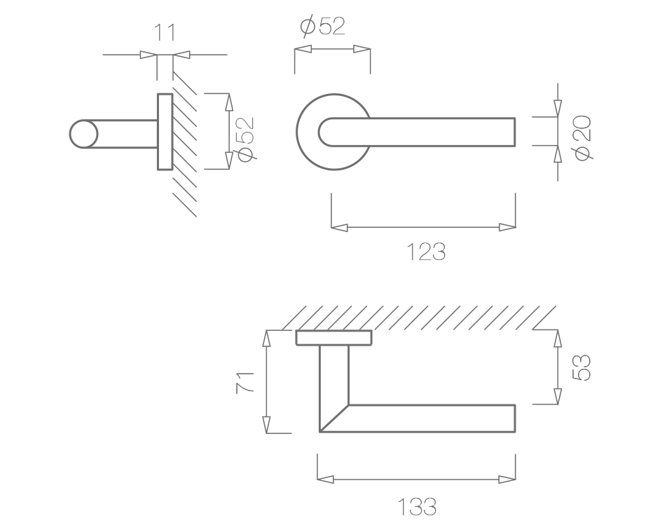 Rozetová klika na interiérové ​​dveře s kulatou rozetou je vyrobena z vysoce kvalitní nerezavějící oceli, známé jako nerez a je povrchově upravena. Rozeta má průměr 52 mm a standardní tloušťku 11 mm.