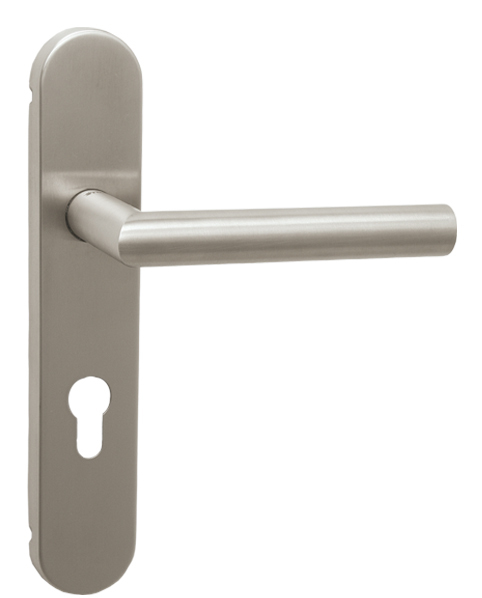 Štítová klika na interiérové ​​dveře s oválným štítem je vyrobena z vysoce kvalitní nerezavějící oceli, známé jako nerez a je povrchově upravena. Oválný štít má rozměry 43 mm x 227 mm a klika obsahuje vratný mechanismus.