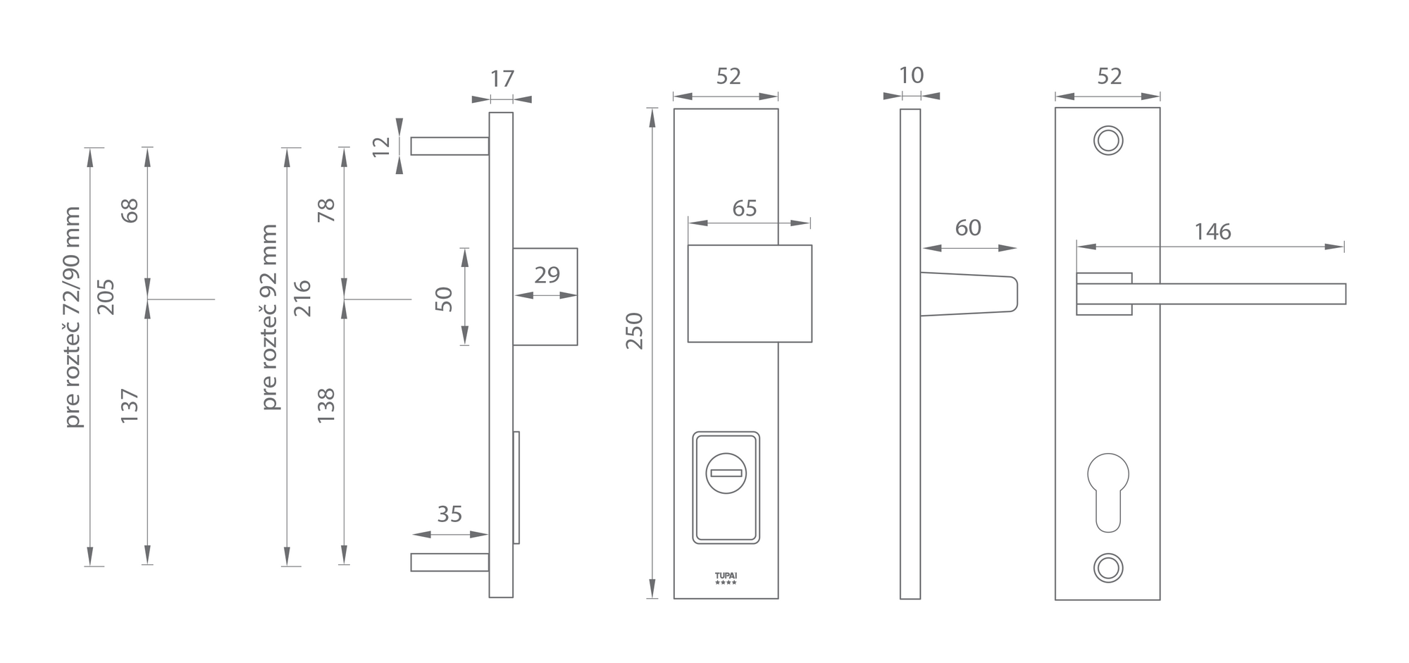 Jelikož jsme se přímo podíleli na vývoji TUPAI SAFETY LINE, můžeme zaručit kvalitu tohoto extrémně odolného kování. Madlo je kotvené na dvou pevnostních šroubech pro celoživotní fixaci bez možnosti samovolného uvolnění. Ocelová závitová pouzdra, která zajišťují prošroubování přes dveře, jsou chráněna ocelovou kuličkou a podložkou proti odvrtání. Ocelové překrytí je uchyceno z vnitřní strany na 4 pevnostní šrouby a výsuv překrytí vložky je nastavitelný do 3 mm. Mechanismus umožňuje uzamykání tahem kliky nahoru. Kování má vlastní vratný mechanismus - pružinu, která zabezpečí vodorovnou polohu kliky nezávisle na zámku.