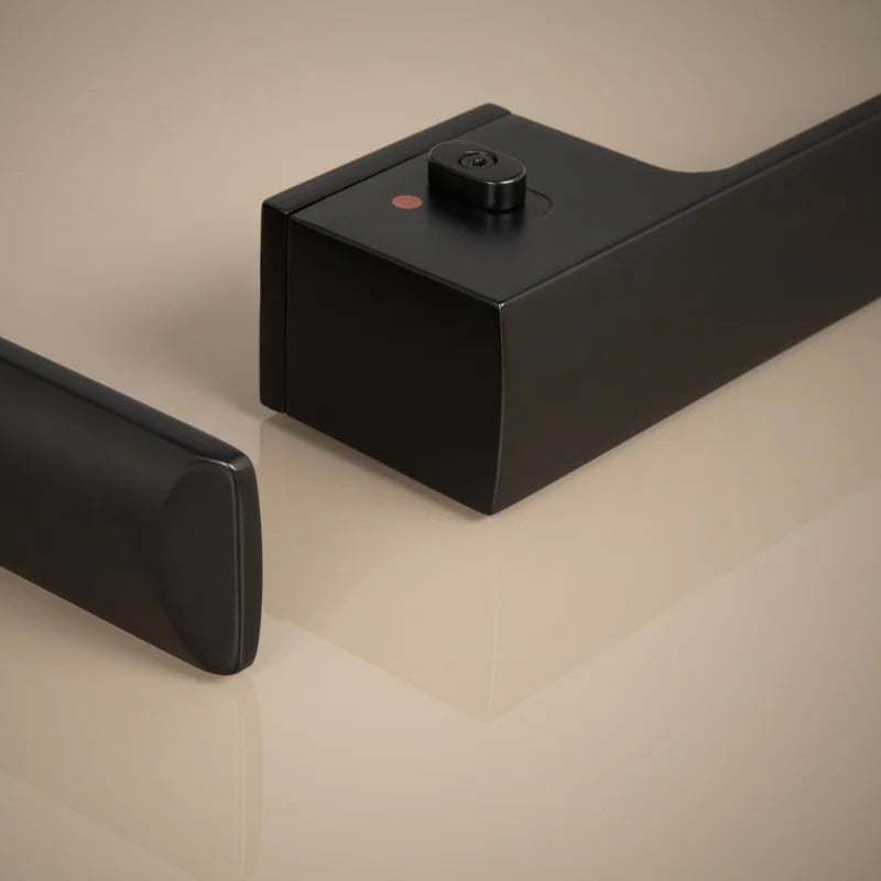 Samotná rozeta je součástí designu kliky. Klika má integrovanou inteligentní technologii uzamykání přímo v klice, takže není potřeba použití rozety s mechanickým klíčem. Klika je výjimečná svým nadčasovým designem a vysokou kvalitou.