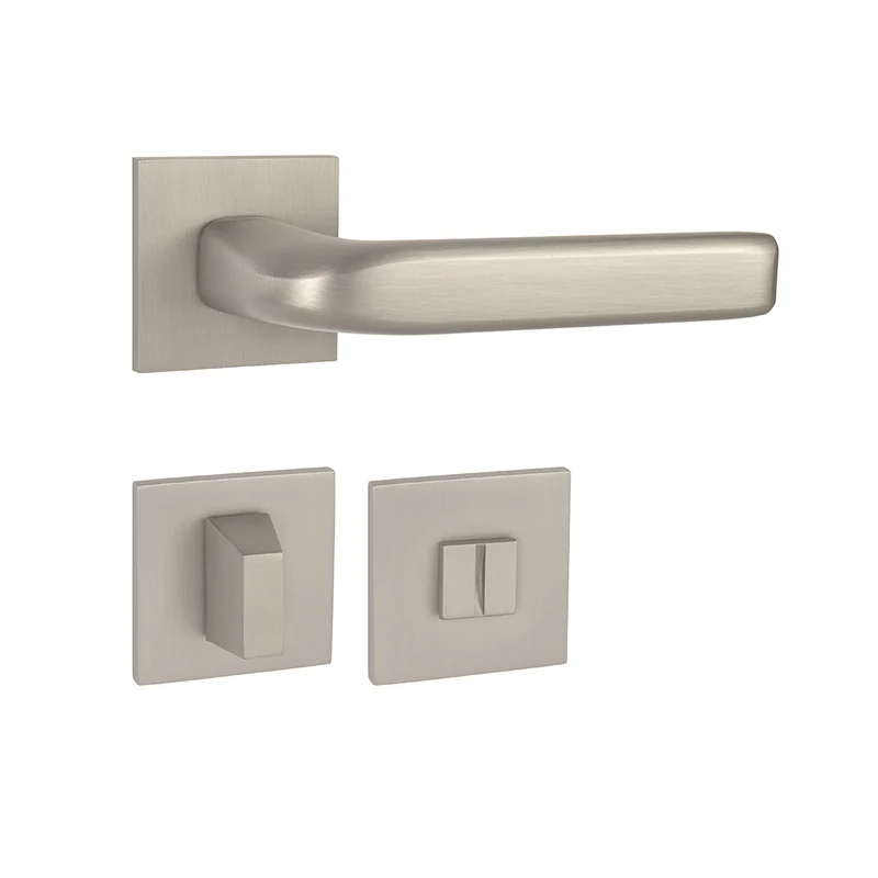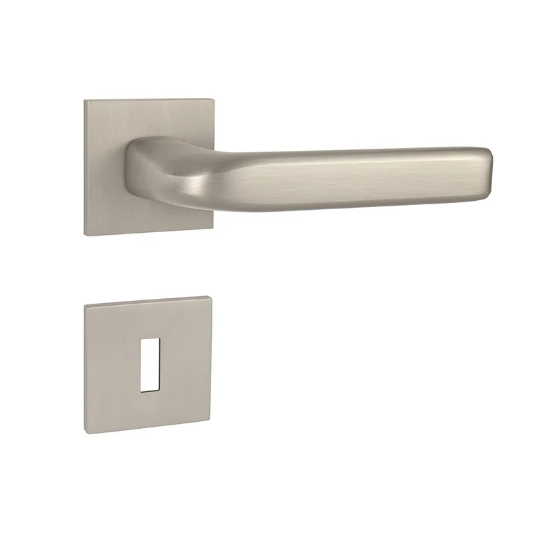 Rozetová klika na interiérové ​​dveře s hranatou rozetou je vyrobena z materiálů vysoké kvality - mosaz a je povrchově upravena. Rozeta má rozměry 52 mm x 52 mm a tloušťku pouze 5 mm.