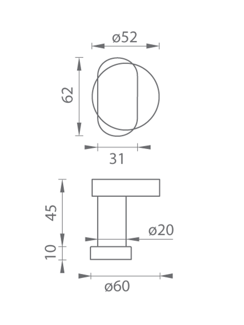 Dveřní VYOSENÁ koule na oválné rozetě je vyrobena z vysoce kvalitní nerezavějící oceli, známé jako nerez a je povrchově upravena. Koule z řady TUPAI STANDARD LINE má průměr 52 mm a oválná rozeta má rozměry 31 mm a 62 mm a tloušťku 10 mm.