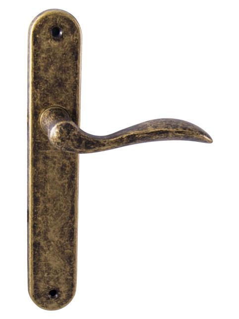 Štítová klika na interiérové ​​dveře s oválným štítem je vyrobena z materiálů vysoké kvality - mosaz a je povrchově upravena. Oválný štít má rozměry 40 mm x 243 mm a klika obsahuje vratný mechanismus.