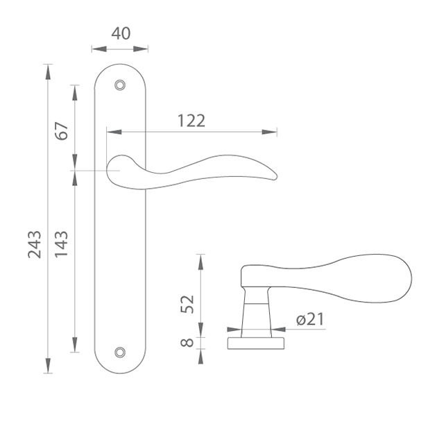 Štítová klika na interiérové ​​dveře s oválným štítem je vyrobena z materiálů vysoké kvality - mosaz a je povrchově upravena. Oválný štít má rozměry 40 mm x 243 mm a klika obsahuje vratný mechanismus.