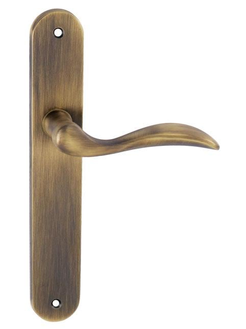 Štítová klika na interiérové ​​dveře s oválným štítem je vyrobena z materiálů vysoké kvality - mosaz a je povrchově upravena. Oválný štít má rozměry 40 mm x 243 mm a klika obsahuje vratný mechanismus.