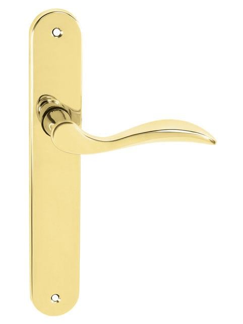 Štítová klika na interiérové ​​dveře s oválným štítem je vyrobena z materiálů vysoké kvality - mosaz a je povrchově upravena. Oválný štít má rozměry 40 mm x 243 mm a klika obsahuje vratný mechanismus.
