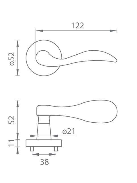 Rozetová klika na interiérové ​​dveře s kulatou rozetou je vyrobena z materiálů vysoké kvality - mosaz a je povrchově upravena. Rozeta má průměr 52 mm a standardní tloušťku 11 mm.
