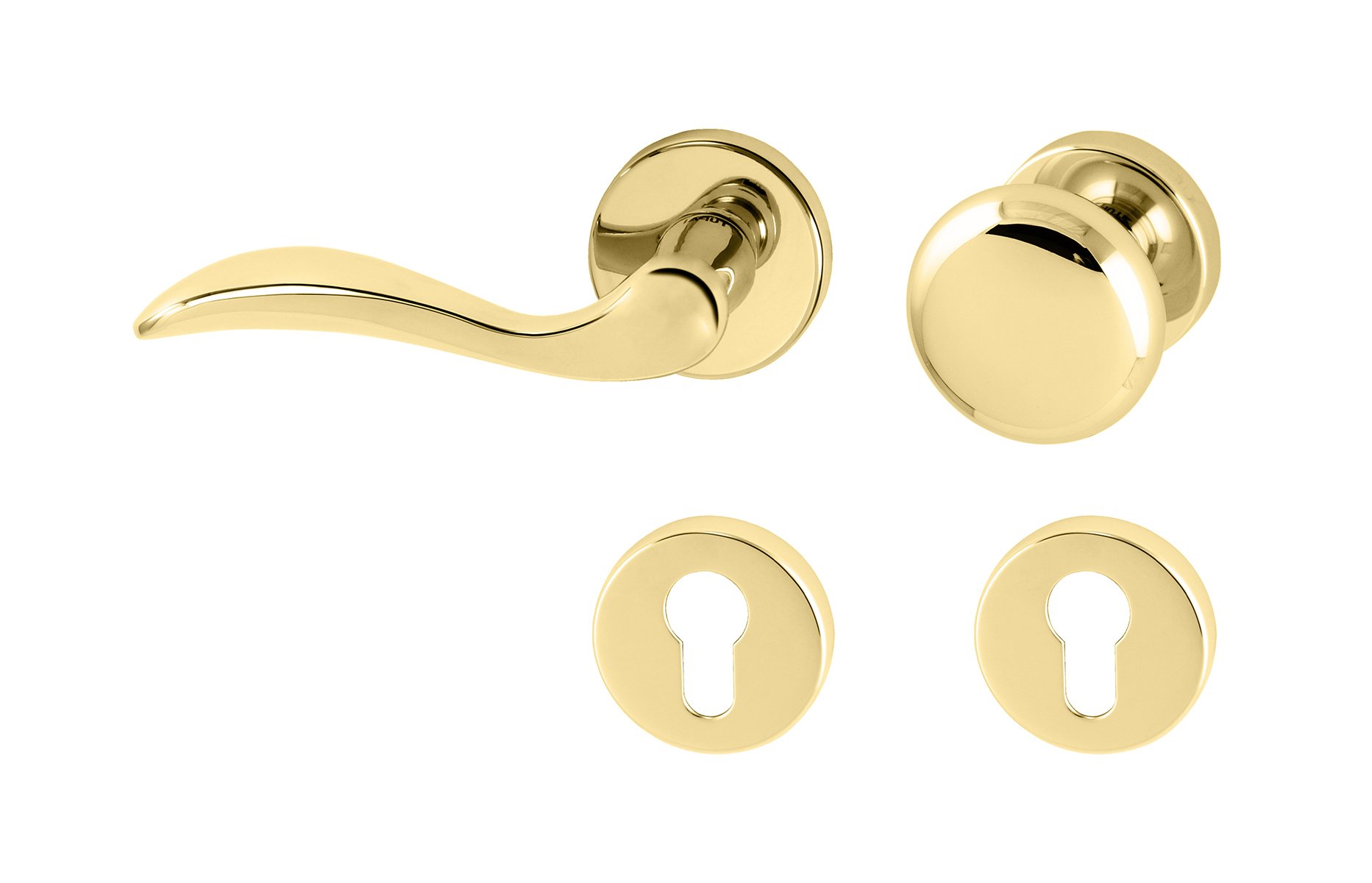 TI - LEA - R 1948 OLV - Mosaz leštěná lakovaná (01) - rozety PZ - koule/klika pravá (4/8)