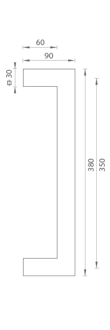Madlo na dveře je vyrobeno z vysoce kvalitní nerezavějící oceli, známé jako nerez a je povrchově upraveno. Profil madla 30 mm x 30 mm, rozteč šroubů 350 mm, délka madla 500 mm, hloubka madla 75 mm. Spojovací materiál je součástí balení.