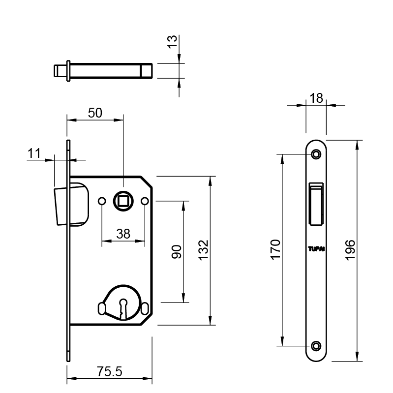 Dormas: 50 mm (vzdálenost osy kliky od lišty zámku)