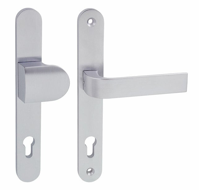 Zpevněné kování vyvinuté pro hliníkové, plastové nebo dřevěné dveře s úzkým profilem, kde se nevyžaduje bezpečnostní certifikát. Povrchová úprava chrom lesklý, chrom broušený, bílá, černá jsou vhodné i do exteriéru.