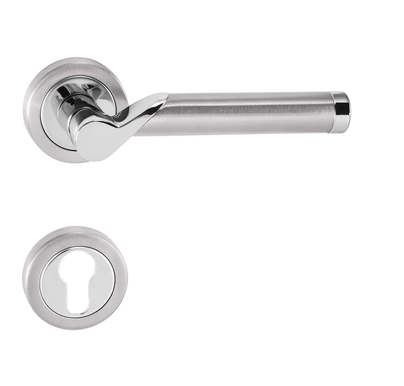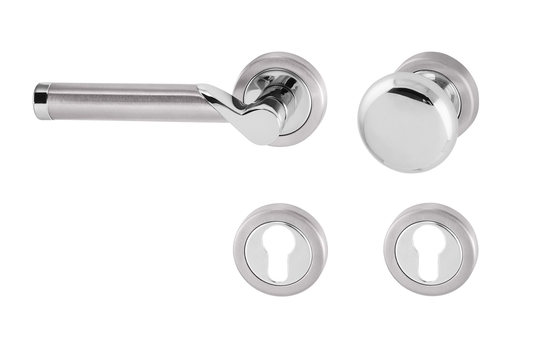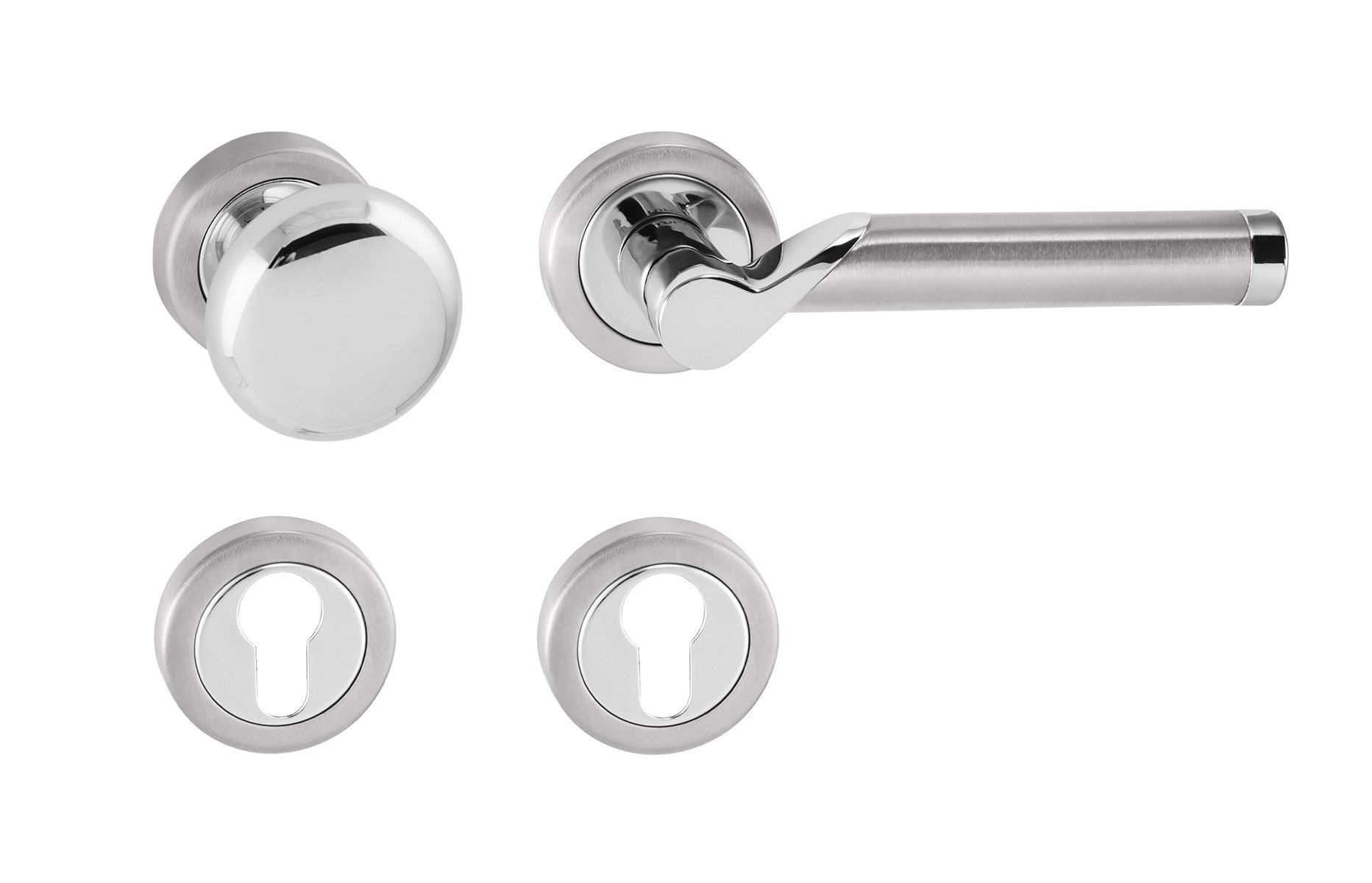 Rozetová klika na interiérové dveře s kulatou rozetou je vyrobena z materiálů vysoké kvality - zamak a z kvalitní nerezavějící oceli, známé jako nerez a je povrchově upravena. Rozeta má průměr 52 mm a standardní tloušťku 11 mm.