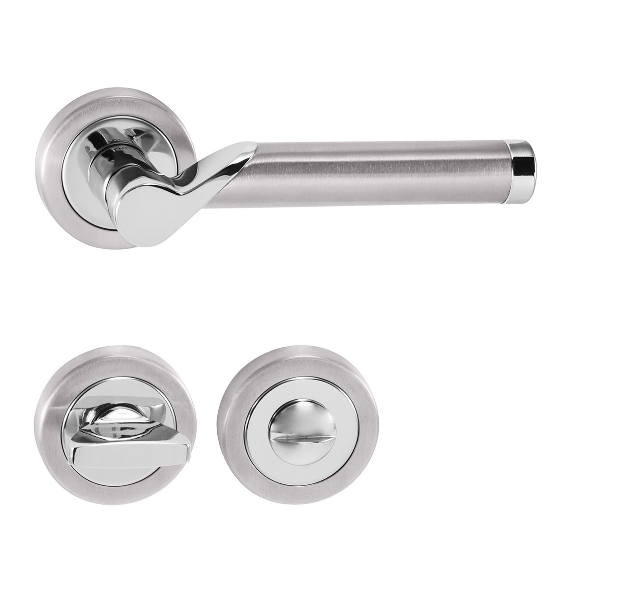 Rozetová klika na interiérové dveře s kulatou rozetou je vyrobena z materiálů vysoké kvality - zamak a z kvalitní nerezavějící oceli, známé jako nerez a je povrchově upravena. Rozeta má průměr 52 mm a standardní tloušťku 11 mm.