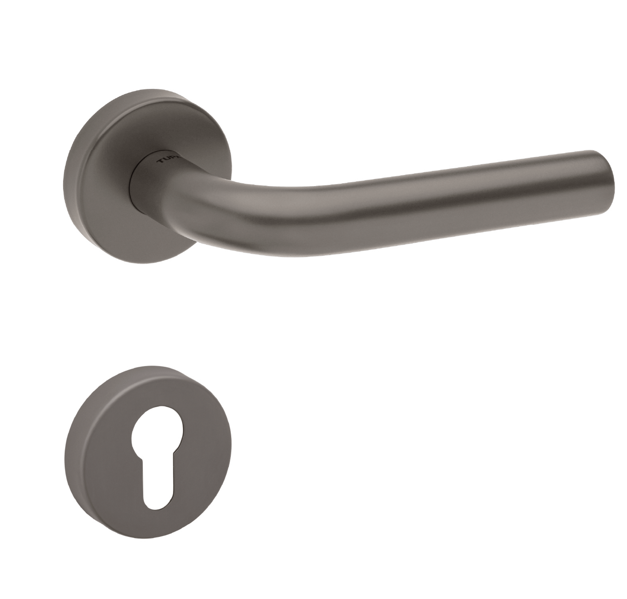 Rozetová klika na interiérové ​​dveře s kulatou rozetou je vyrobena z vysoce kvalitní nerezavějící oceli, známé jako nerez a je povrchově upravena. Rozeta má průměr 52 mm a standardní tloušťku 11 mm.