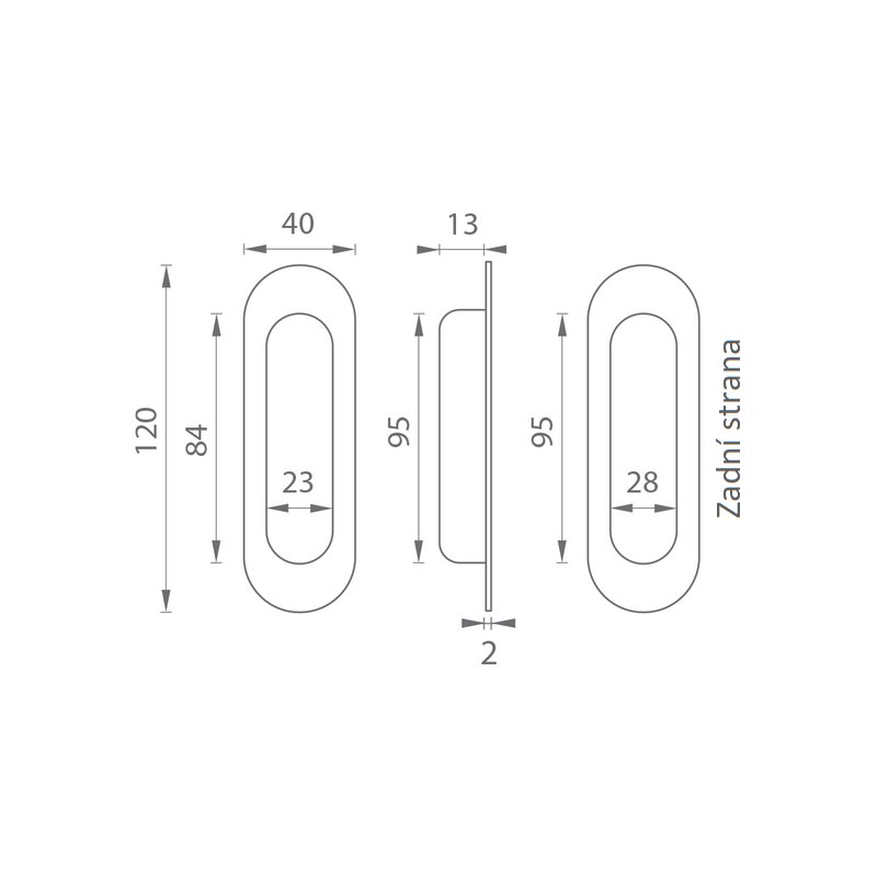 Oválná mušle na posuvné dveře je vyrobená z vysoce kvalitní nerezavějící oceli (nerez) a je povrchově upravená.