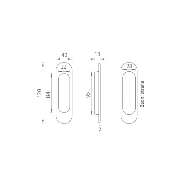 Oválná mušle na posuvné dveře je vyrobená z vysoce kvalitní nerezavějící oceli (nerez) a je povrchově upravená.