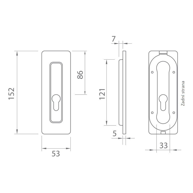 TI - Mušle na posuvné dveře - 4181 5S - PZ OCS - Chrom broušený (96) - PZ otvor pro vložku (4/4)