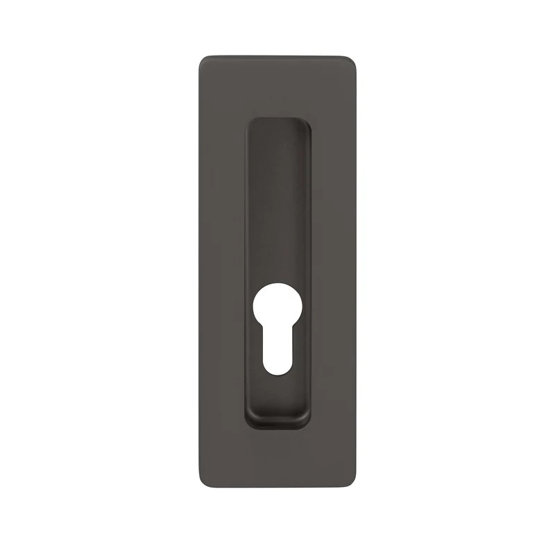 Hranatá mušle s PZ otvorem pro vložku na posuvné dveře je vyrobená z kvalitního materiálu mosaz/zamak - slitina zinku a je povrchově upravená.