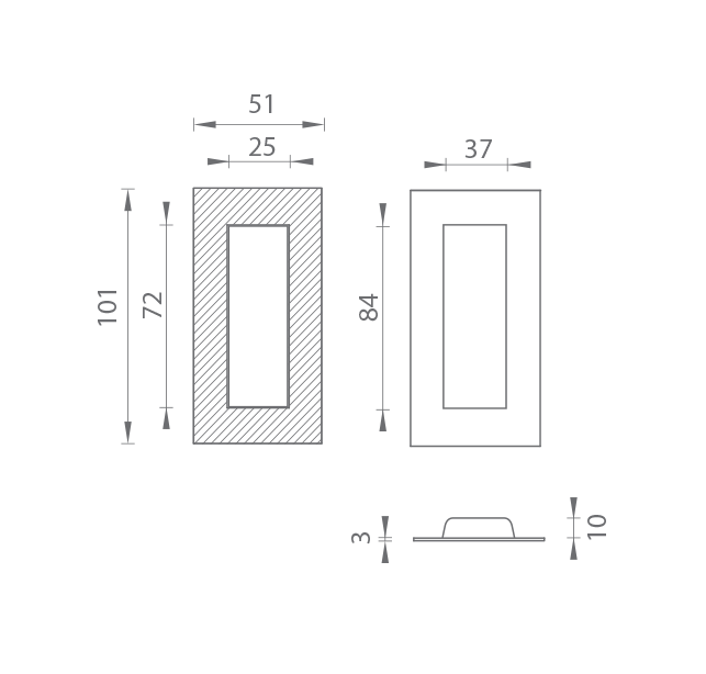 Hranatá mušle na posuvné dveře je vyrobena z vysoce kvalitní nerezavějící oceli, známé jako nerez a je povrchově upravena. Mušle má výšku 101 mm, šířku 51 mm, zádlab 8,5 mm a celkovou tloušťku 10 mm. Montáž mušle lepením. Cena je uvedena za kus.