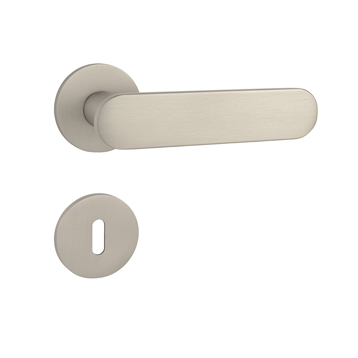 Rozetová klika na interiérové ​​dveře s kulatou rozetou je vyrobena z materiálů vysoké kvality - mosaz a je povrchově upravena. Rozeta má průměr 52 mm a tloušťku pouze 5 mm.