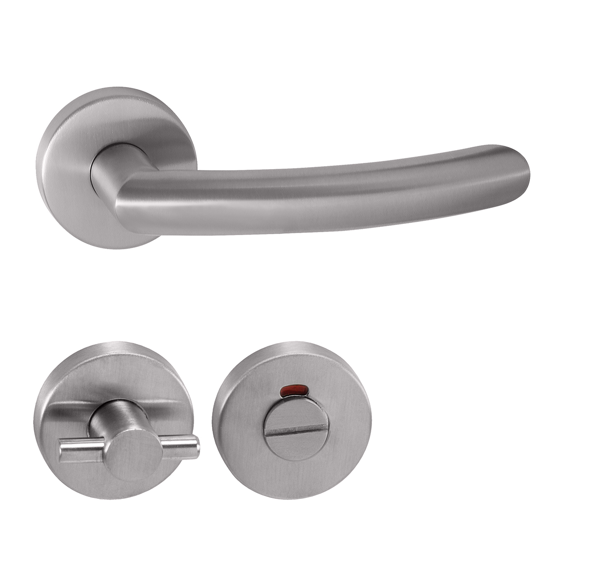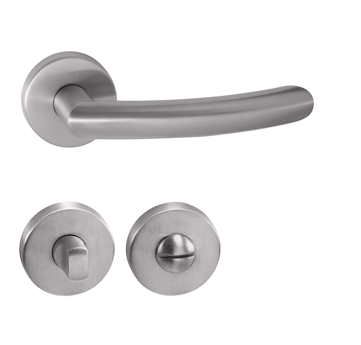 Rozetová klika na interiérové ​​dveře s kulatou rozetou je vyrobena z vysoce kvalitní nerezavějící oceli, známé jako nerez a je povrchově upravena. Rozeta má průměr 52 mm a standardní tloušťku 11 mm.
