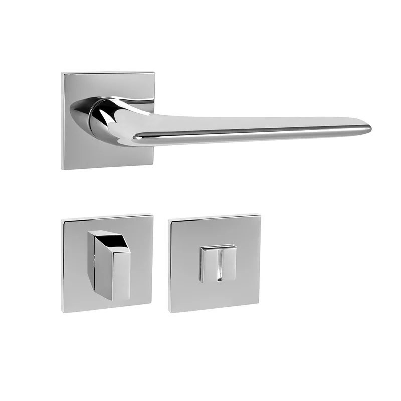 Rozetová klika na interiérové ​​dveře s hranatou rozetou je vyrobena z materiálů vysoké kvality - mosaz a je povrchově upravena. Rozeta má rozměry 52 mm x 52 mm a tloušťku pouze 5 mm.