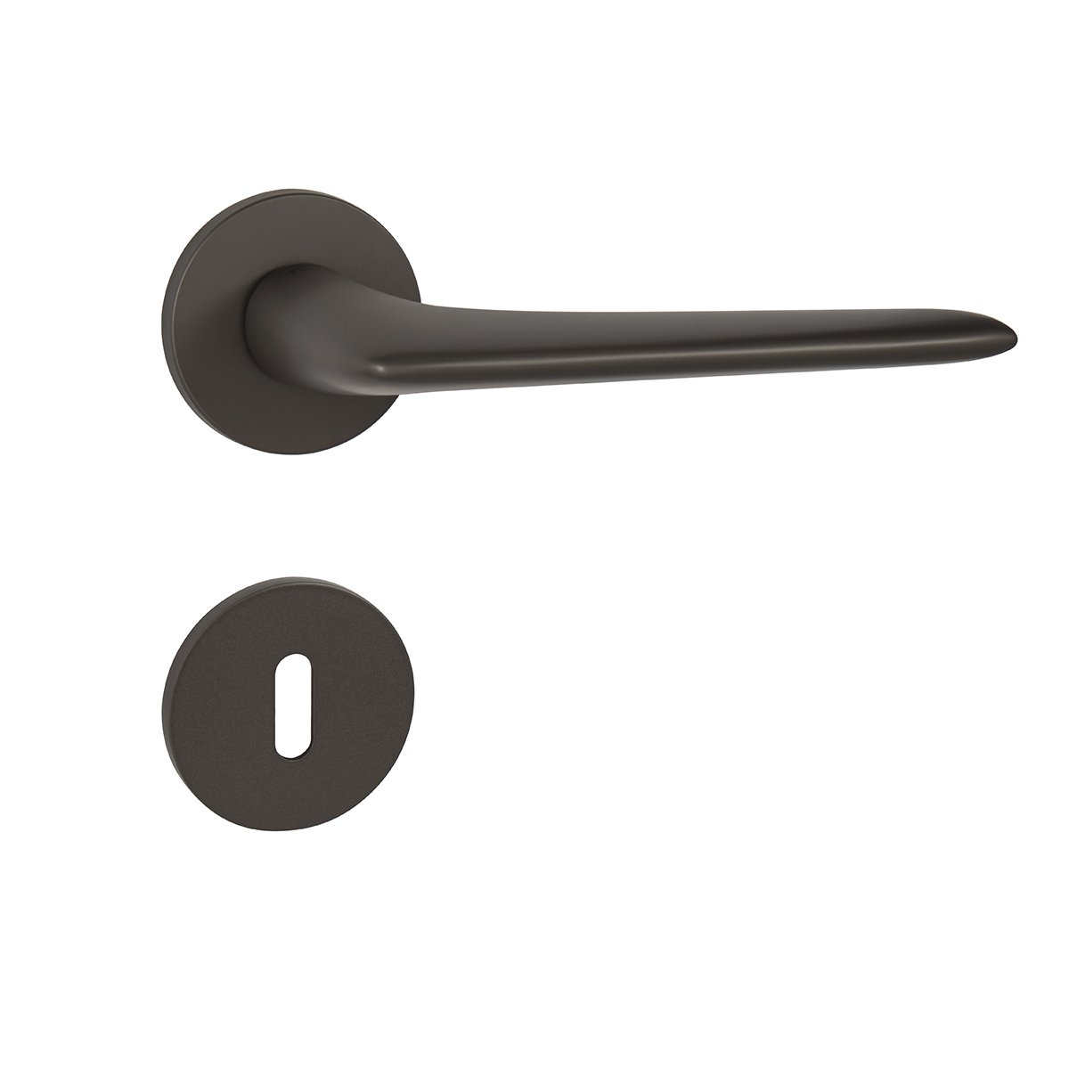 Rozetová klika na interiérové ​​dveře s kulatou rozetou je vyrobena z materiálů vysoké kvality - mosaz a je povrchově upravena. Rozeta má průměr 52 mm a tloušťku pouze 5 mm.