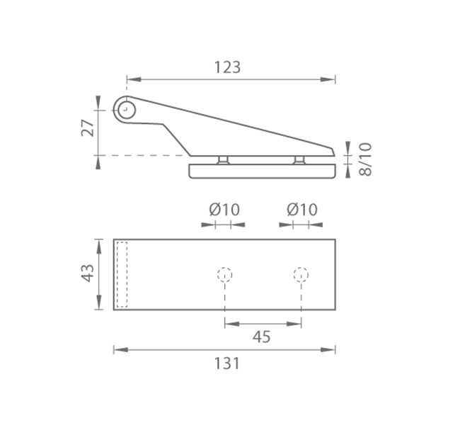 Horizontální pant na sklo je vyroben z materiálů vysoké kvality - mosaz / zamak a je povrchově upraven.