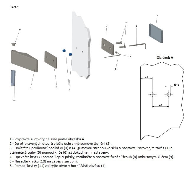 Tloušťka skla min. 8 mm - max. 12 mm.