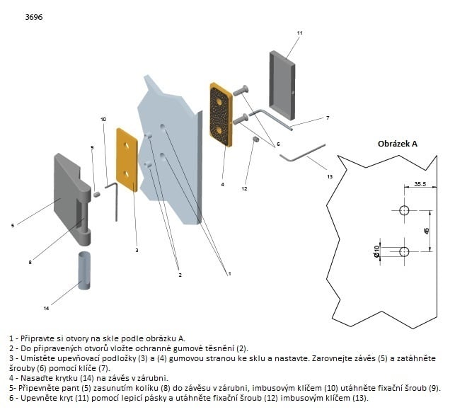 Tloušťka skla min. 8 mm - max. 12 mm.
