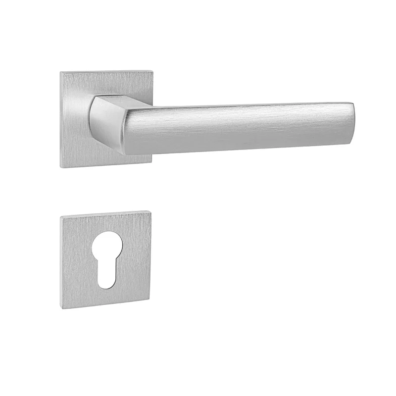 Rozetová klika na interiérové ​​dveře s hranatou rozetou je vyrobena z materiálů vysoké kvality - mosaz a je povrchově upravena. Rozeta má rozměry 52 mm x 52 mm a tloušťku pouze 5 mm.