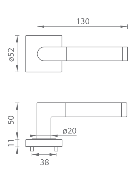 Rozetová klika na interiérové dveře s hranatou rozetou je vyrobena z materiálů vysoké kvality - zamak a z kvalitní nerezavějící oceli, známé jako nerez a je povrchově upravena. Rozeta má rozměry 52 mm x 52 mm a standardní tloušťku 11 mm.