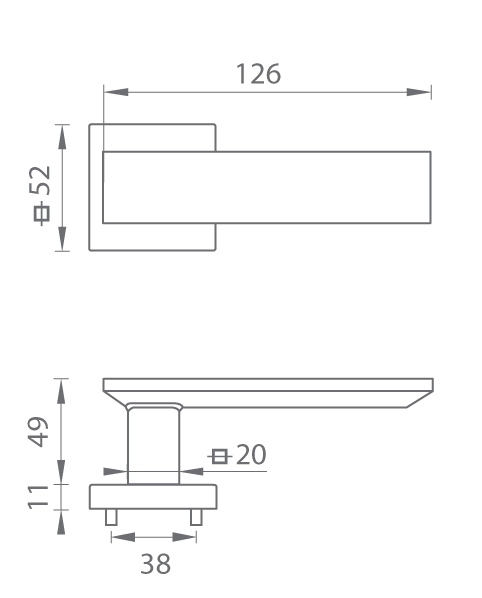 Rozetová klika na interiérové dveře s hranatou rozetou je vyrobena z materiálů vysoké kvality - zamak a je povrchově upravena. Rozeta má rozměry 52 mm x 52 mm a standardní tloušťku 11 mm.