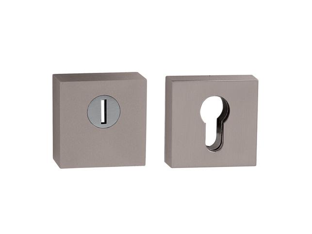 Bezpečnostní hranatá rozeta s překrytím cylindrické vložky je vyrobena z materiálů vysoké kvality - zamak / ocel a je povrchově upravena.