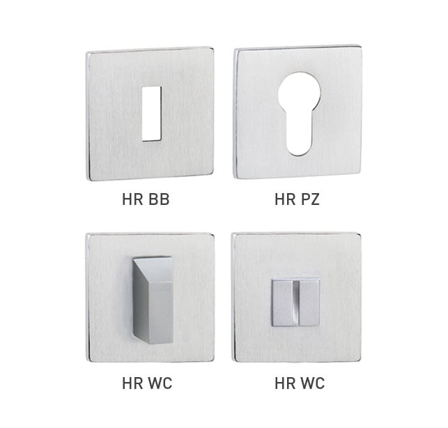 V nabídce naleznete hranatý otvor pro interiérový klíč (BBQ), otvor pro cylindrickou vložku (PZ) nebo WC set s vmontovaným klíčem.